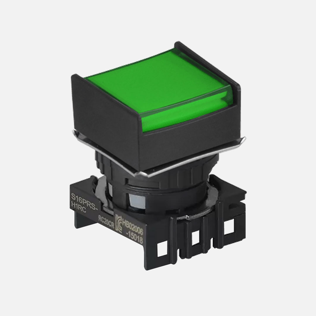 S16PRS-H2G Botón pulsador cuadrado saliente media guarda 16mm mantenido verde