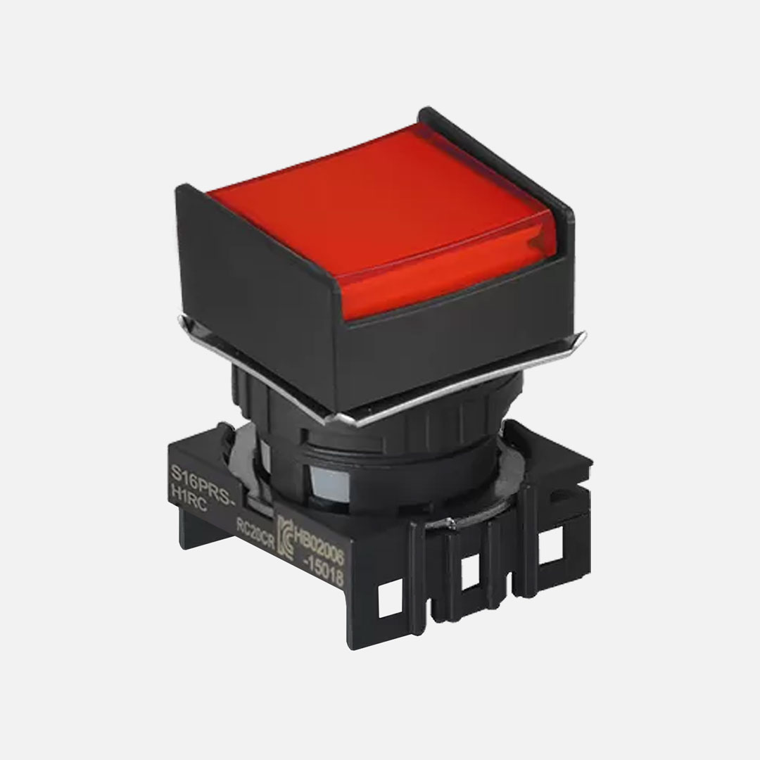 S16PRS-H2R Botón pulsador cuadrado saliente media guarda 16mm mantenido rojo