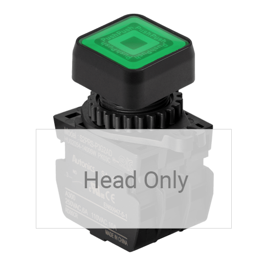 S2PRS-P3G Botón pulsador cuadrado iluminado saliente 22mm momentáneo verde