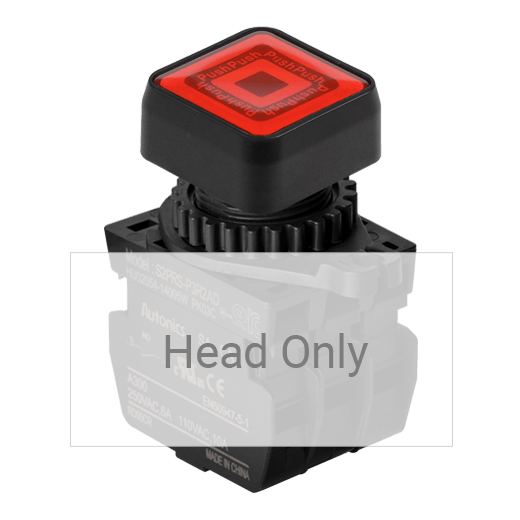 S2PRS-P3R Botón pulsador cuadrado iluminado saliente 22mm momentáneo rojo