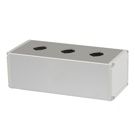 SA-SB3 Botonera metálica con perfil cuadrado para botonería de 22/25mm. 3 orificios. Dimensiones: 70HX186LX70Dmm.