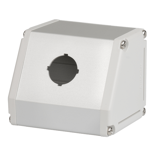 SA-TB1 Botonera metálica con perfil triangular para botonería de 22/25mm. 1 orificio. Dimensiones: 70HX86LX70Dmm.
