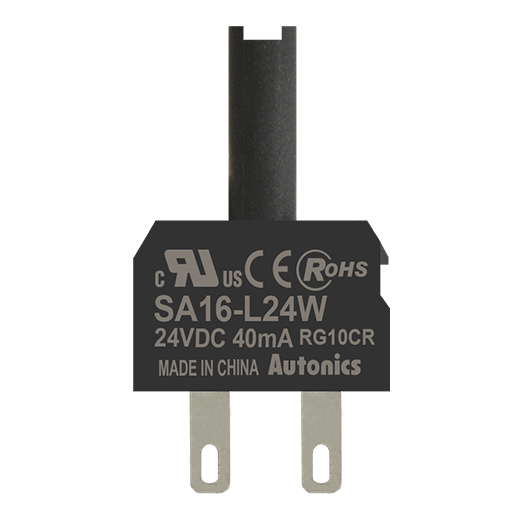 SA16-L24W Block luminoso LED diseño singular. Montaje posterior con conección tipo fastón. Tensión nominal: 24VCA/CD. Color blanco. Accesorio para botonería/Luz piloto/selector de16mm. No soporta el ensamble de mas blocks LED.