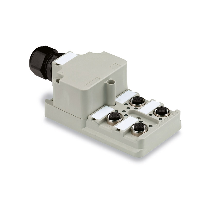 SAI-4-M 4P M12 Distribuidor pasivo LED con 4 sockets M12 4P Capota IP68