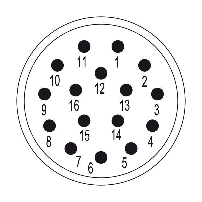 SAI-M23-SE-16 Serie SAI M23. Inserto macho M23. 16 polos. Diseñado para una carga de 8A a 160V. Conexión crimpada. Termoplástico Poliamida 6(Pa 6).