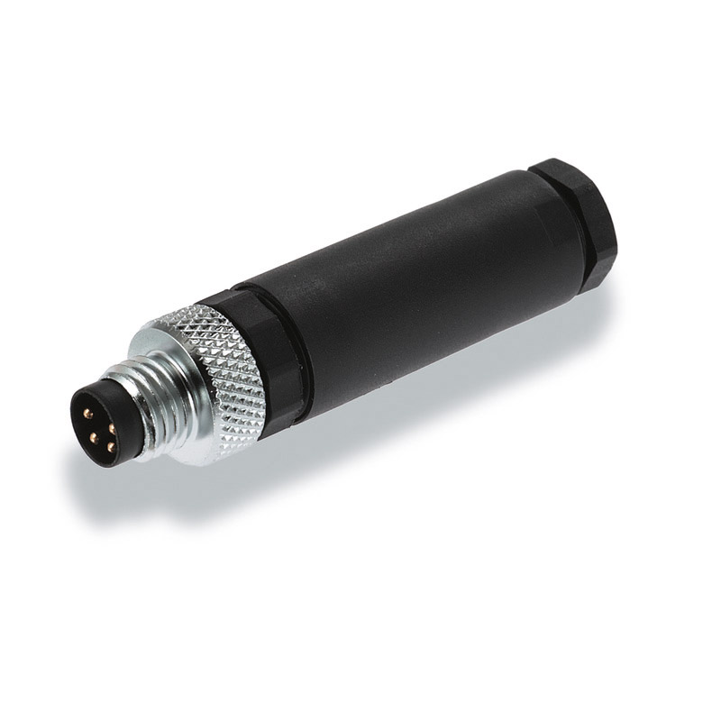 SAIS-M8-4P SAI Series. M8 Straight, male plug-in connector for signals. -coded. 4-pole. 4A rated current at 60V. Screw connection type. 3.5-5mm cable diameter. 0.14-0.5 mm² wire cross-section range. polyamide as housing main material. -40°C~85°C temperature range of housing. IP67 protection degree.