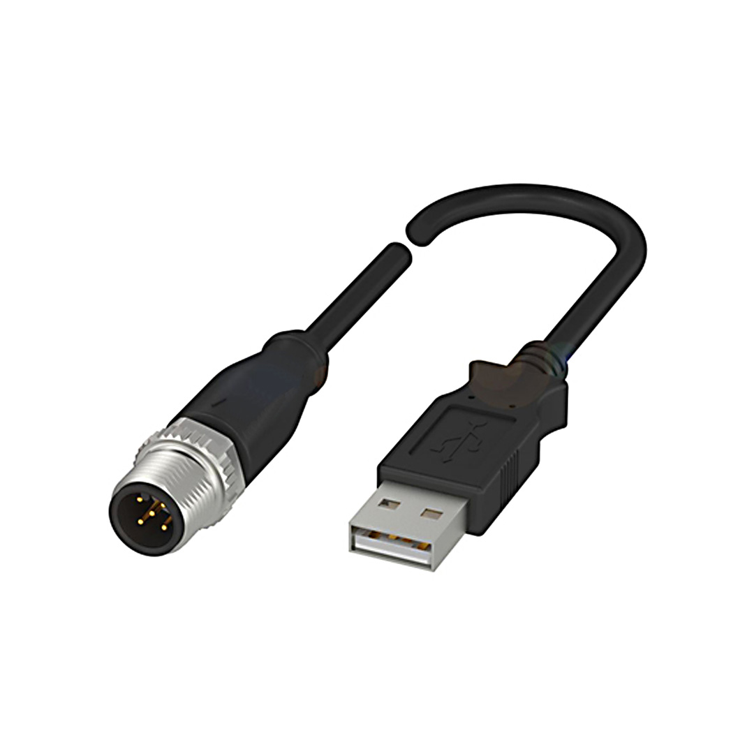 SCM-USM12 Serie COM. Convertidor de comunicación serial, indicado para usarse con Puerto PDCT. Conexión 1: USB 2.0 tipo A (macho). Conexión 2: M12 Macho 5 pines Codigo A. Sección nominal de /. Cable de 2mt de extensión con asilamiento de PVC. Temperatura de trabajo de -40°C~85°C. Grado de protección IP67.