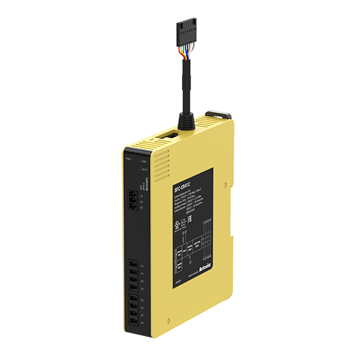SFC-ER412-L Expansión relé de seguridad. Composición de contactos: Salida de seguridad 4NA, salida auxiliar PNP. Conexión de terminales de tipo sin tornillos. Tensión de alimentación: 24VDC.