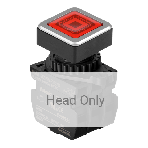 SQ3PFS-P3R Botón pulsador cuadrado iluminado rasante 30mm momentáneo rojo