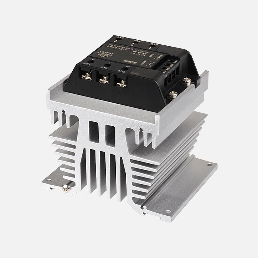 SRH3-1275 SSR Relevador de estado sólido trifásico con disipador de calor integrado. Tensión de control de 4-30VCD, indicado para una corriente de carga nominal de 75A a tensión de 24-240VCA. Función de cruce por cero. Montaje a panel/riel DIN. Dimensiones de 100Hx131Wx112.2Dmm. Rigidez dieléctrica de 2500 VCA 50/60 Hz 1min. Temperatura de trabajo de -30 a 70°C. Aprobaciones CE, cRU us.