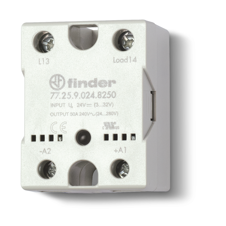 77.25.9.024.8650 SSR Relevador de estado sólido monofásico. Tensión de control de 4-32VCD. Indicado para una corriente de carga nominal de 25A a una tensión de 43.2-660VCA. Función de cruce por cero. Montaje a panel. Dimensiones de 104.5Hx22.5Wx120.3Dmm. Rigidez dieléctrica de 4000VCA. Vida eléctrica 10x106 ciclos. Temperatura de trabajo de -30°C~80°C. Aprobaciones: CE, UKCA, EAC, cRUus. Ideal para aplicaciones como; Control de calentadores.