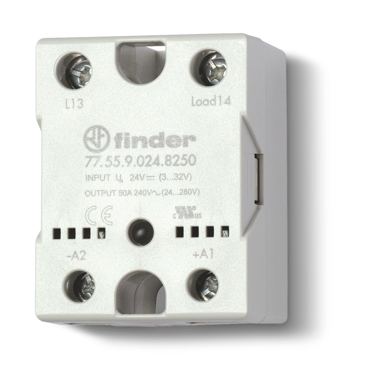77.55.8.230.8650 SSR Relevador de estado sólido monofásico. Tensión de control de 90-280VCA. Indicado para una corriente de carga nominal de 50A a una tensión de 43.2-660VCA. Función de cruce por cero. Montaje a panel. Dimensiones de 57.7Hx44.5Wx36.4Dmm. Rigidez dieléctrica de 4000VCA. Vida eléctrica 10x106 ciclos. Temperatura de trabajo de -30°C~80°C. Aprobaciones: CE, UKCA, EAC, cRUus. Ideal para aplicaciones como; Control de calentadores.
