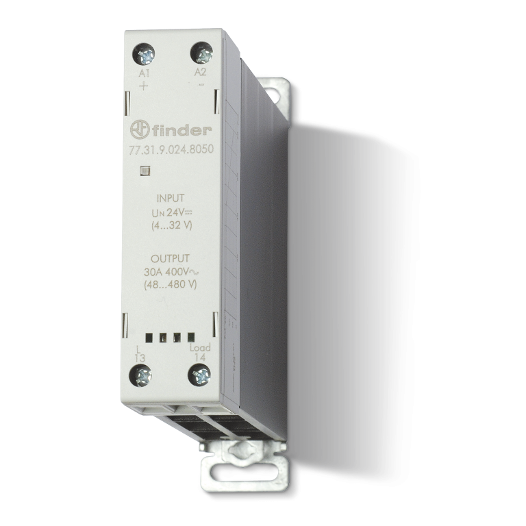 77.31.8.230.8051 SSR Relevador de estado sólido monofásico con disipador de calor integrado y tapa de plástico. Tensión de control de 40-280VCA. Indicado para una corriente de carga nominal de 30A a una tensión de 48-480VCA. Función de cruce aleatorio. Montaje a riel DIN. Dimensiones de 104.5Hx22.5Wx120.3Dmm. Rigidez dieléctrica de 3000VCA. Vida eléctrica 10x106 ciclos. Temperatura de trabajo de -30°C~80°C. Aprobaciones: CE, UKCA, EAC, cRUus. Ideal para aplicaciones como; Control y regulación fina que precise de tiempos de conexión y desconexión cortos (especialmente el mando de motores).