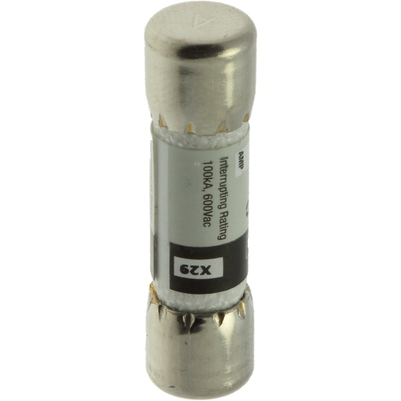 Fusible de accion rapida suplementario. Tamaño: 10x38mm (13/32" x 1-1/2"). Indicado para una corriente de 5A. Máxima tensión de empleo 600VCA. Especificado a una capacidad interruptiva de 100kA. Aprobaciones: UL Listed, CSA certified, RoHS compliant, CE.