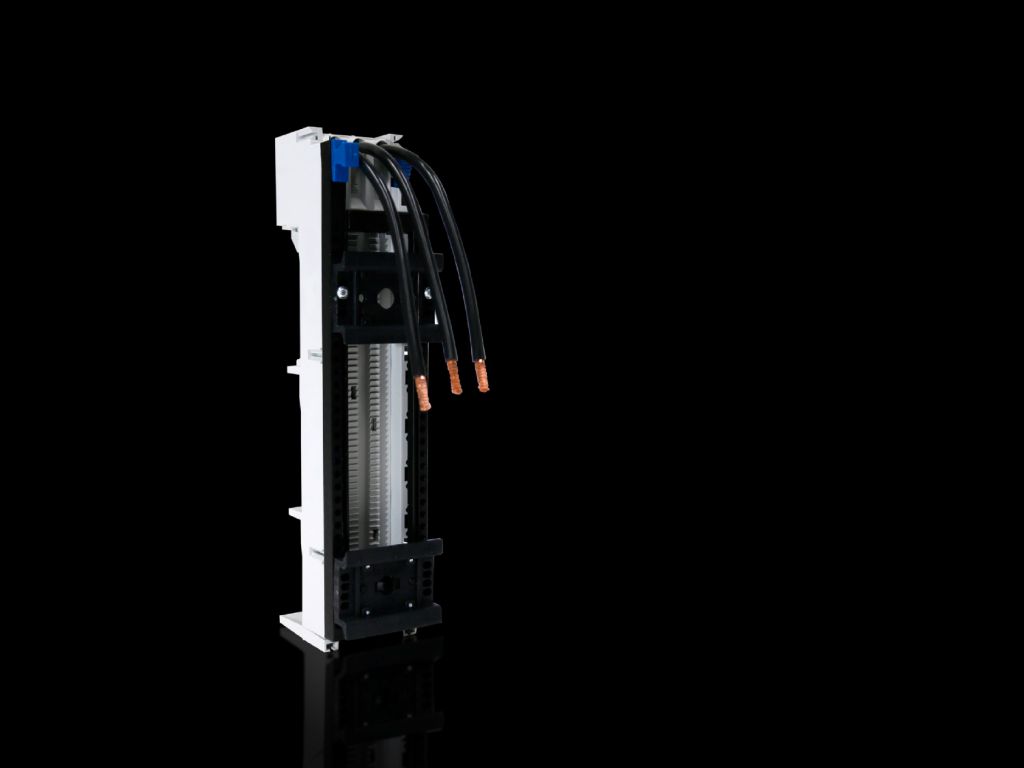 9340.380 Adaptador OM con cables de conexión trifásico con cable de conexión de 130mm. Para sistemas de barras con distancia entre centros de 60mm. Corriente máxima: 32A a 690VCA. Carriles soporte nº/al: 2/10. Marco soporte (An.xAl.): 45 x 170. Tipo carril soporte: TS 45D, TS 45D-V. Conexión de conductores redondos, multifilar: 10AWG. Adecuado para barras colectoras con grosor de 5/10 mm.