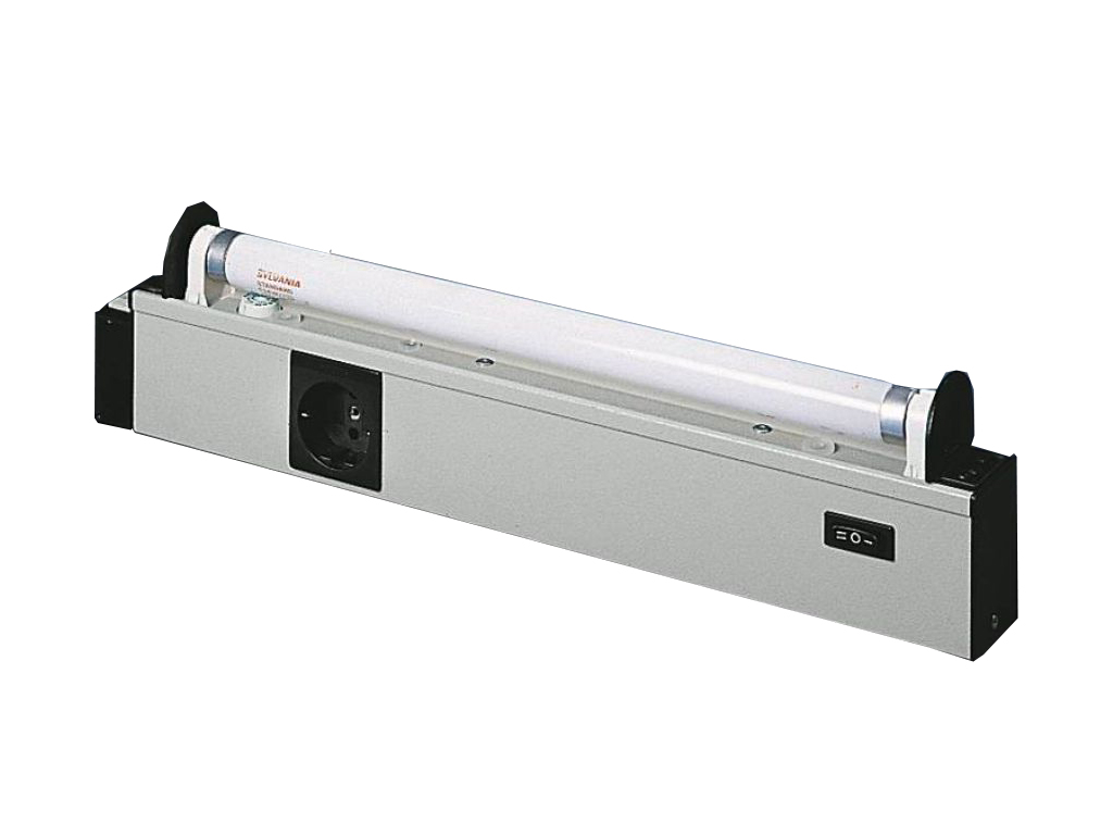 4138.180 SZ Luminaria fluorescente estándar para armarios de potencia de 18W y longitud de 682mm. Tensión de servicio: 230VCA. Posibilidades de conexión: Alimentación a través de conector, Interruptor de puerta, Cableado de paso (montaje en serie de lámparas). Tipo de montaje de la luminaria: atornillado. Ejecución: con base de enchufe tipo schuko Interruptor integrado, encendido/apagado/interruptor de puerta. Aprobaciones: ENEC.
