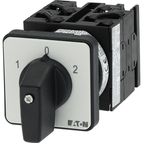 T0-4-8441/E Interruptor-seccionador de levas 2 velocidades, bidirecciónal, 2 velocidades, no reversible, para motores de dos velocidades en conexión Dahlander o de polos conmutables. Con manija tipo palanca negra y placa frontal. 3 polos. 8 contactos. Diseño de placa frontal: FS684. Corriente nominal: 20A. Potencia bajo clasificación del motor AC-23A: 6.5Kw a 440 VCA. Montaje: empotrar. Angulo de operación: 60°. Grado de protección IP: IP65.