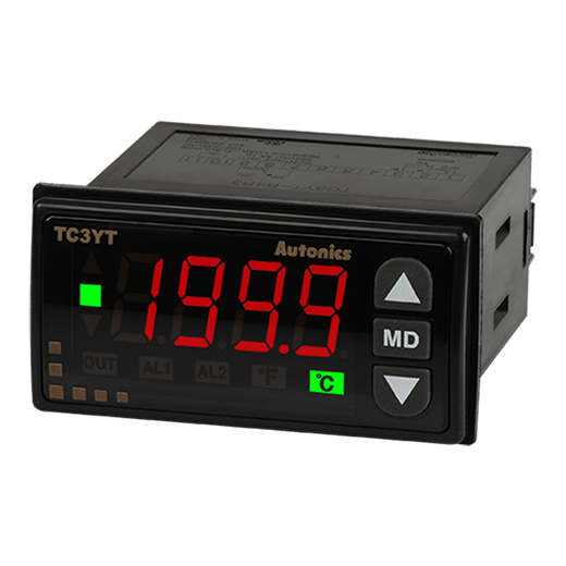 TC3YT-B4R16 Control de temperatura para refrigeración de simple operación, 3 dígitos. Ciclo de muestreo de 500ms. Tamaño DIN 72WX36H con profundidad de 77Dmm. Salida de control tipo: relevador. Tensión de alimentación: 100-240VCA. Métodos de control: ON/OFF, Control P. Entrada de sensor tipo: K, J, RTD.