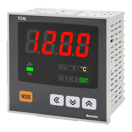 TC4L-24R Controlador de temperatura PID económico con display individual de 4 dígitos. Tiene un ciclo de muestreo rápido de 100ms y un tamaño compacto DIN 96WX96Hx64.5Dmm. Ofrece varios métodos de control entre los que están ON/OFF, P, PI, PD y PID y admite diferentes tipos de entrada de termopar (K, J, L) y RTD (DPt100O, Cu50O). Cuenta con una salida de control tipo relé (3A~250V) y SSR (12V) y dos alarmas integradas. Opera a una tensión de alimentación de 100-240VCA. Para más información favor de consultar la ficha técnica.