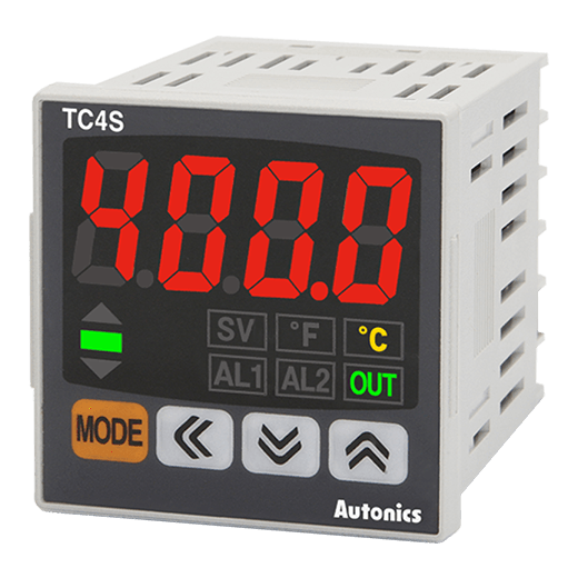 TC4S-22R Controlador de temperatura PID económico con display individual de 4 dígitos. Tiene un ciclo de muestreo rápido de 100ms y un tamaño compacto DIN 48WX48Hx64.5Dmm. Ofrece varios métodos de control entre los que están ON/OFF, P, PI, PD y PID y admite diferentes tipos de entrada de termopar (K, J, L) y RTD (DPt100O, Cu50O). Cuenta con una salida de control tipo relé (3A~250V) y SSR (12V) y dos alarmas integradas. Opera a una tensión de alimentación de 24VCA/CD. Para más información favor de consultar la ficha técnica.