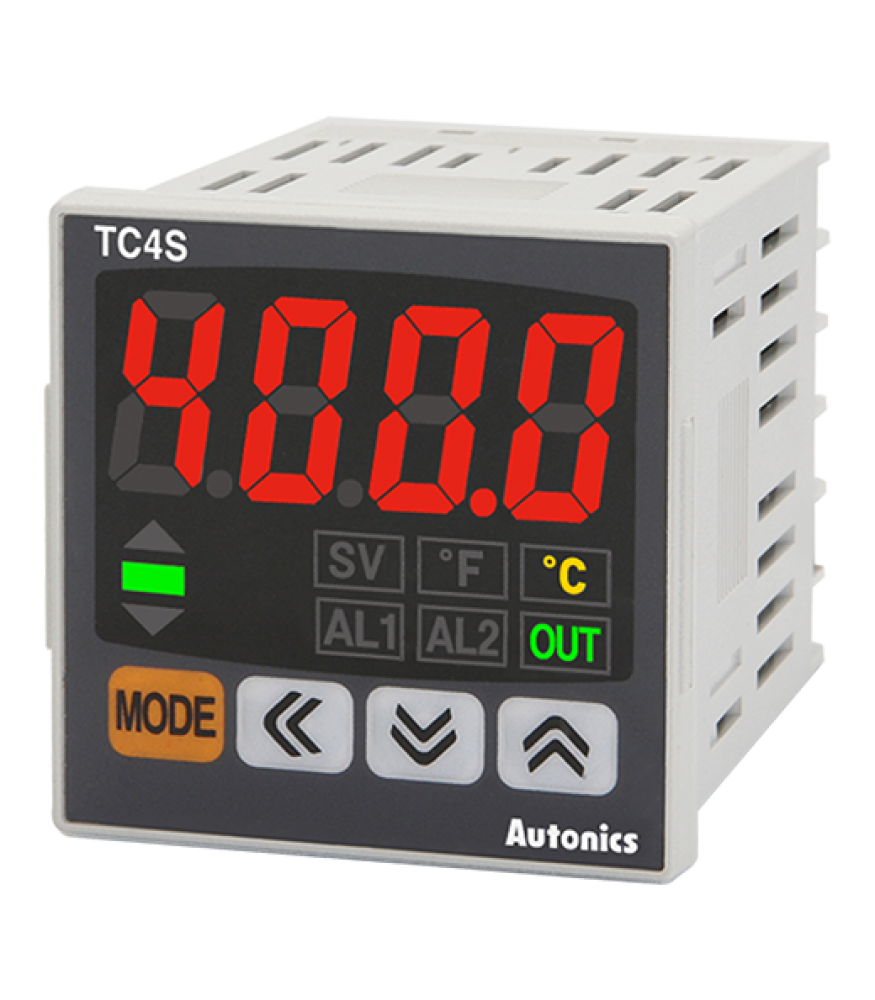 TC4S-N4R Controlador de temperatura PID económico con display individual de 4 dígitos. Tiene un ciclo de muestreo rápido de 100ms y un tamaño compacto DIN 48WX48Hx64.5Dmm. Ofrece varios métodos de control entre los que están ON/OFF, P, PI, PD y PID y admite diferentes tipos de entrada de termopar (K, J, L) y RTD (DPt100O, Cu50O). Cuenta con una salida de control tipo relé (3A~250V) y SSR (12V) y no cuenta con alarmas integradas. Opera a una tensión de alimentación de 100-240VCA. Para más información favor de consultar la ficha técnica.