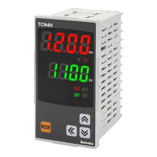 TCN4H-22R Controlador de temperatura PID económico con display doble de 4 dígitos. Tiene un ciclo de muestreo rápido de 100ms y un tamaño compacto DIN 48WX96Hx64.5Dmm. Ofrece varios métodos de control entre los que están ON/OFF, P, PI, PD y PID y admite diferentes tipos de entrada de termopar (K, J, T, R, S, L) y RTD (DPt100O, Cu50O). Cuenta con una salida de control tipo relé (3A~250V) y SSR (12V) y dos alarmas integradas. Opera a una tensión de alimentación de 24VCA/CD. Para más información favor de consultar la ficha técnica.