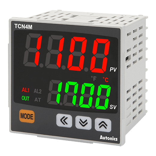 TCN4M-24R Controlador de temperatura PID económico con display doble de 4 dígitos. Tiene un ciclo de muestreo rápido de 100ms y un tamaño compacto DIN 72WX72Hx64.5Dmm. Ofrece varios métodos de control entre los que están ON/OFF, P, PI, PD y PID y admite diferentes tipos de entrada de termopar (K, J, T, R, S, L) y RTD (DPt100O, Cu50O). Cuenta con una salida de control tipo relé (3A~250V) y SSR (12V) y dos alarmas integradas. Opera a una tensión de alimentación de 100-240VCA. Para más información favor de consultar la ficha técnica.