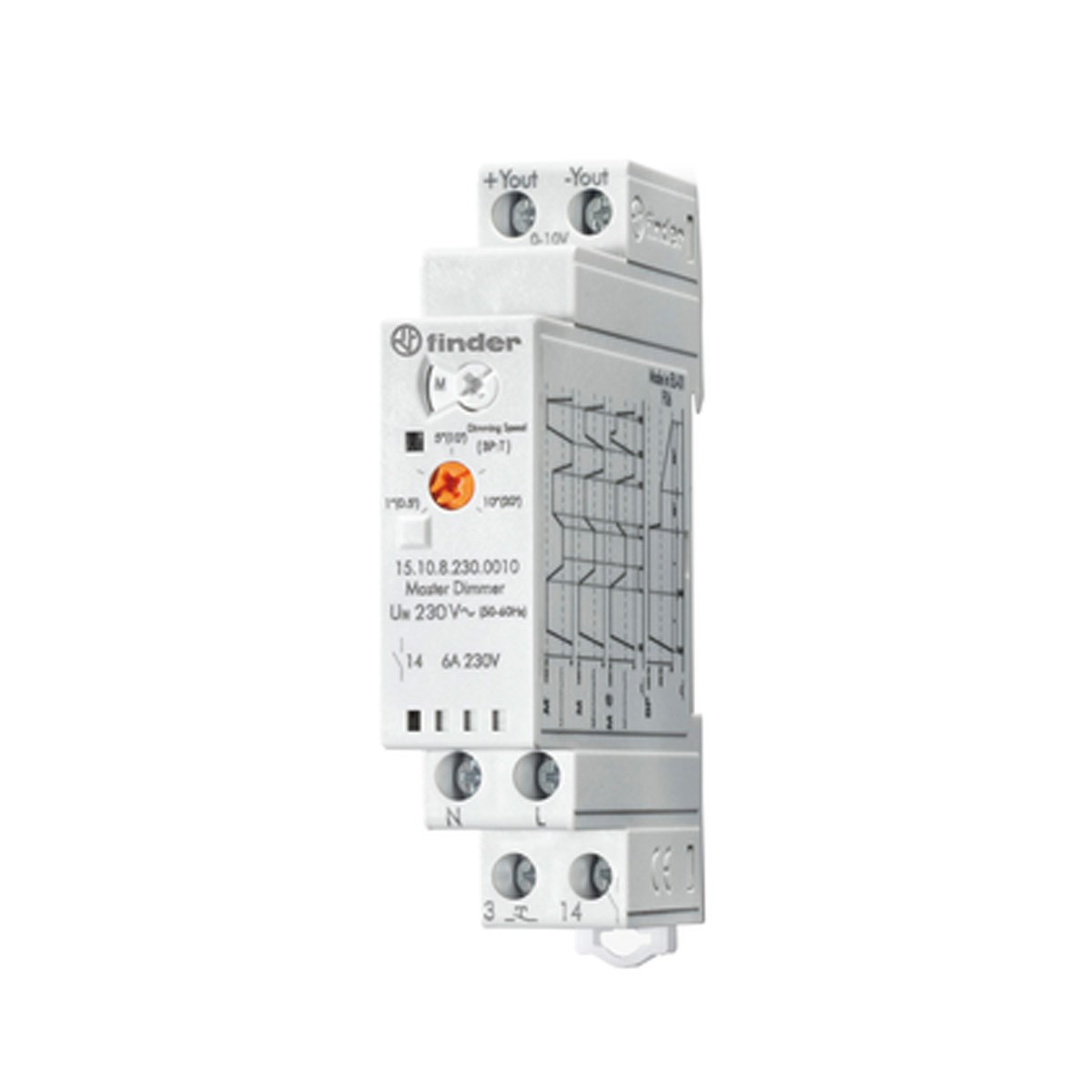 15.10.8.230.0010 Telerruptor electrónico Dimmer Maestro. Con salida de control de 0/1-10V. Funciones: multifunción. Tensión de mando de 110-230VCA. Equipado con contactos 1NA. Material de los contactos: plata niquel (AgNi). Indicado para una corriente nominal de 6A a tensión de 230VCA. Dimensiones: 84Hx17.5Wx60.8Dmm. Montaje en Riel DIN. Temperatura de operación -10°C~60°C. Aprobaciones: CE, UKCA, EAC. Protección IP20.