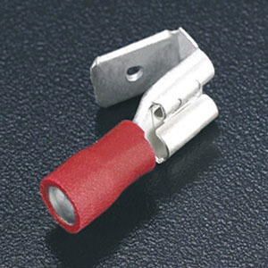 Terminal tipo faston mixto de latón estañado con aislante de vinil. Indicado para un calibre de 0.5-1.5mm² (22-16AWG). Conexión a terminal plana de 6.3X0.8mm. Dimensiones: 22.5mm de longitud total, 10.5mm longitud de aislante. Empaquetado de 100 piezas. C