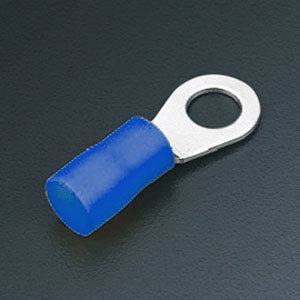 Terminal tipo ojillo de cobre estañado con aislante de vinil. Indicado para un calibre de 1.5-2.5mm² (16-14AWG). Barreno de M5 / 3/16". Dimensiones: 21.8mm de longitud total, 10mm longitud de aislante. Empaquetado de 100 piezas. Color azul. Aprobaciones: