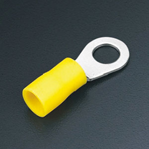 Terminal tipo ojillo de cobre estañado con aislante de vinil. Indicado para un calibre de 4-6mm² (12-10AWG). Barreno de M5 / 3/16". Dimensiones: 26.0mm de longitud total, 13mm longitud de aislante. Empaquetado de 100 piezas. Color amarillo. Aprobaciones:
