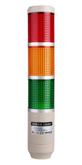 Lámpara incandescente de torre conexión por medio terminal de 56mm diámetro. Fija / Intermitente + Zumbador. Nivel de sonido del timbre de 80dB. Con 3 módulos luminosos (Rojo, Amarillo, Verde). Tensión de alimentación: 24VCA/CD. Temperatura de operación: -15°-40°C. Material: Policarbonato. Grado de protección: IP54.