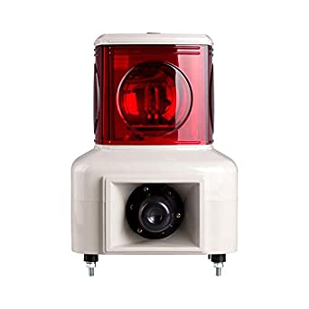 Lámpara incandescente de torre de forma cuadrada de 140mm por lado. Reflector tipo giratorio + Zumbador. Nivel de sonido del timbre de 100dB con 5 tipos de sonidos. Con 1 módulo luminoso color Rojo. Tensión de alimentación: 110VCA. Temperatura de operación: -15°-40°C. Material: Policarbonato. Grado de protección: IP20.