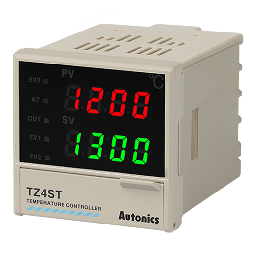 TZ4ST-R4C Controlador de temperatura PID con doble velocidad para control de temperatura de alta velocidad o alta precisión, 4 dígitos. Ciclo de muestreo de 500ms. Tamaño DIN 48WX48H con profundidad de 98.6Dmm. Salida de control tipo: Salida de corriente (4-20mA). 1 evento + salida de transmisión (4-20mA). Tensión de alimentación: 100-240VCA. Métodos de control: ON / OFF, P, PI, PD, PID, control PID. Permite entrada de termopar: K, J, E, T, R, S, N, W y RTD: DPt100O, JPt100O. Analog: 1-5VDC, 0-10VDC, DC4-20mA.