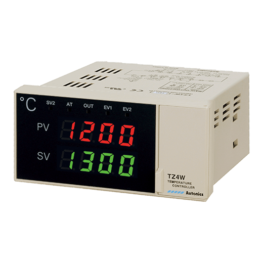 TZ4W-24R Controlador de temperatura PID con doble velocidad para control de temperatura de alta velocidad o alta precisión, 4 dígitos. Ciclo de muestreo de 500ms. Tamaño DIN 96WX48H con profundidad de 100Dmm. Salida de control tipo: relevador. 2 eventos. Tensión de alimentación: 100-240VCA. Métodos de control: ON / OFF, P, PI, PD, PID, control PID. Permite entrada de termopar: K, J, E, T, R, S, N, W y RTD: DPt100O, JPt100O. Analog: 1-5VDC, 0-10VDC, DC4-20mA.