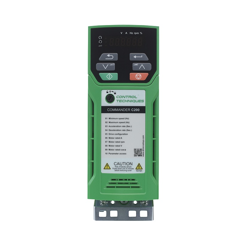Variador de frecuencia de alta resistencia y fiabilidad con PLC y reactor de línea integrado. Tensión de entrada 100-120VCA±10% a 1 fase. Salida a una tensión 220VCA a 3 fases. Capacidad uso pesado: corriente máxima 5.6A; potencia 1.1kW (1.5HP). Alta capa