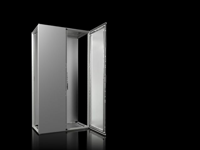 8226.000 VX25 Sistema de armario ensamblable de chapa de acero. Dimensiones: 2200Hx1200Wx600Dmm. Color RAL 7035. Diseño de 2 puertas. Unidad de embalaje: armazón del armario, puerta(s), bisagras a la derecha, intercambiables a izquierda, chapa de techo, dorsal, chapas de entrada de cables, placa de montaje, 2 carriles de montaje 18x39mm, cierre: doble paletón 3 mm (Requiere la compra de zócalos de montaje). Grado de protección IP55, NEMA 12. Aprobaciones: Bureau Veritas, DNV-GL, GOST, UL + C-UL.