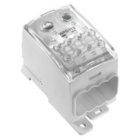 WPD 113 1X185+1X150/8X35 GY Bloque de distribución de potencia de 1x8. Permite la distribución de potencial de forma segura y fiable mediante una conexión brida-tornillo. Permite la conexión de 1 polo dentro un rango de 6-400 AWG/MCM y 8 derivaciones dentro de un rango de 14-2 AWG. Se monta fácilmente sobre riel DIN TS35. Diseñada para soportar una carga de 353A a 1000VCA según el estándar IEC 60947-7-1. Fabricada con material de aluminio en los contactos y PA 66 en color gris para la carcasa que soporta temperaturas de trabajo de -50 ~ +130°C. Para más información consulte la ficha técnica.