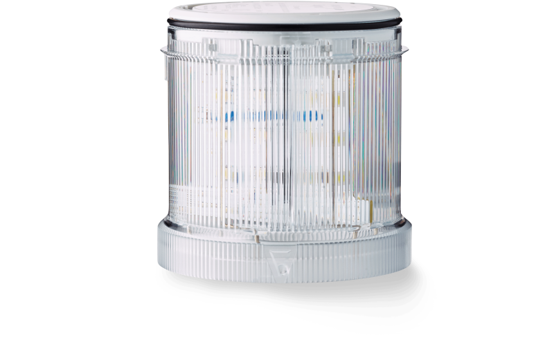 XDA Eco-Modul70 Módulo luminoso LED luz intermitente. Módulo individual para torretas de Ø70mm. Calota color: transparente. Tensión de alimentación: 24VCA/CD. Temperatura de operación: -30 °C ~+60 °C. Material: Policarbonato. Grado de protección: IP66, UL 4/4X/13.