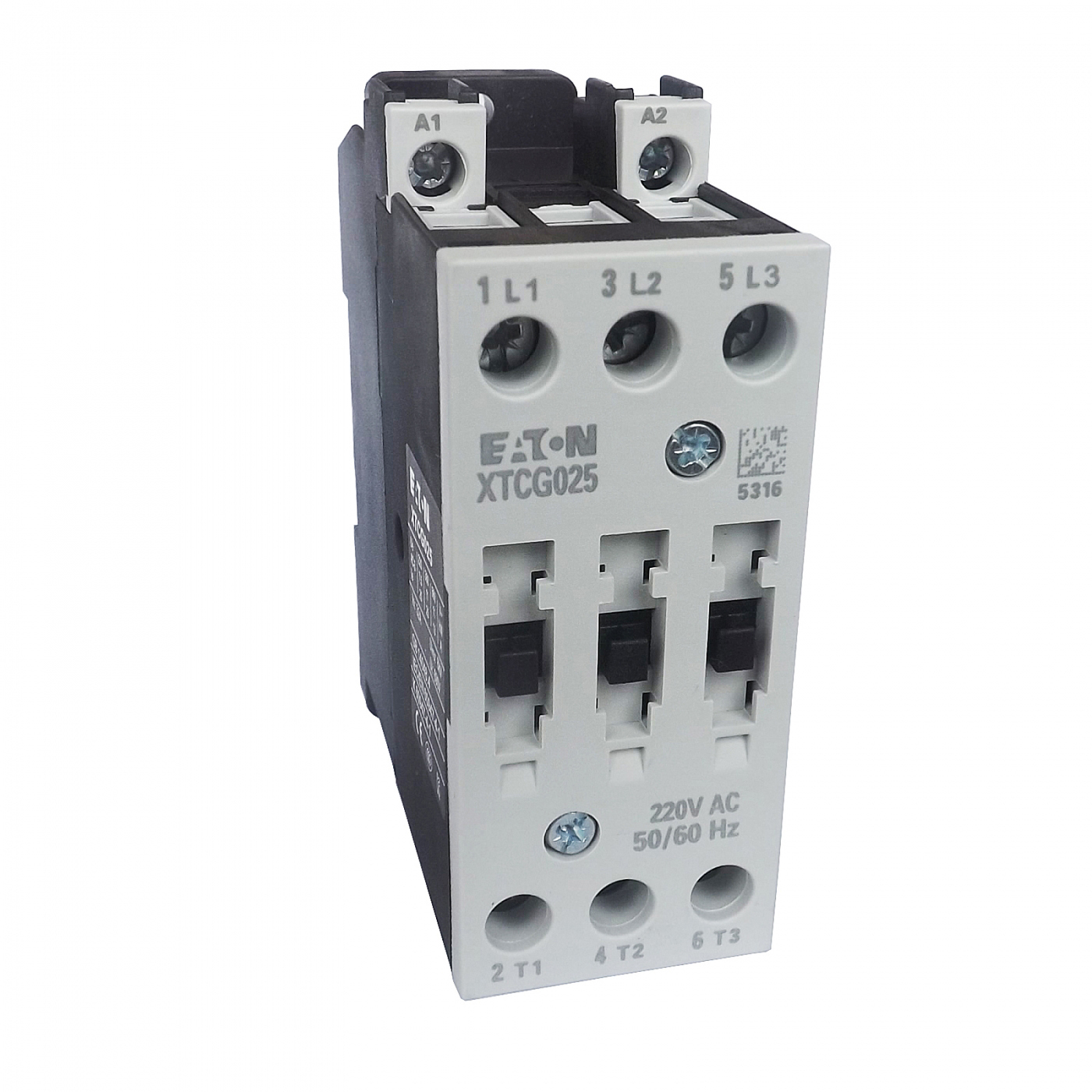 XTCG032C00A0 Contactor trifásico, tensión de bobina de 220VCA, indicado para una carga de 32A, 3HP a 120VCA 1PH/10HP a 220VCA/20HP a 440VCA, temperatura de operación de -25~+55, grado de protección IP20, cumple con los estándares IEC/EN 60947, VDE 0660, UL, CSA.