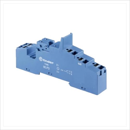95.P3.SPA Zócalo con bornes push-in, para el montaje de relevadores tipo 40.31. Suministrado con brida de retención plástica. Color azul. Diseñado para soportar una carga de 10A a 250V. Montaje en panel/riel DIN. Aprobaciones: CE, UKCA, IMQ, UL, RINA .