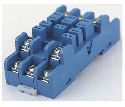92.43.1.SMA Zócalo con bornes a pletina, para el montaje de relevadores tipo 62.32/33. Suministrado con brida de retención metálica. Color azul. Diseñado para soportar una carga de 10A a 250V. Montaje en panel/riel DIN. Aprobaciones: .