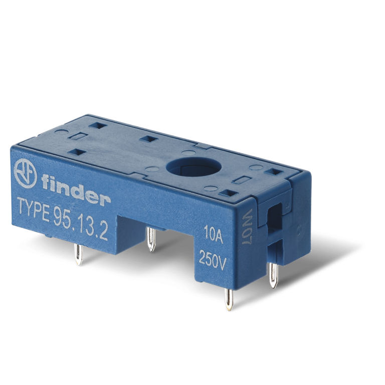 95.13.2.SMA Zócalo para circuito impreso, para el montaje de relevadores tipo 40.31. Suministrado con brida de retención metálica. Color azul. Diseñado para soportar una carga de 12A a 250V. Montaje en Circuito impreso. Aprobaciones: CSA, EAC, IMQ, UL.