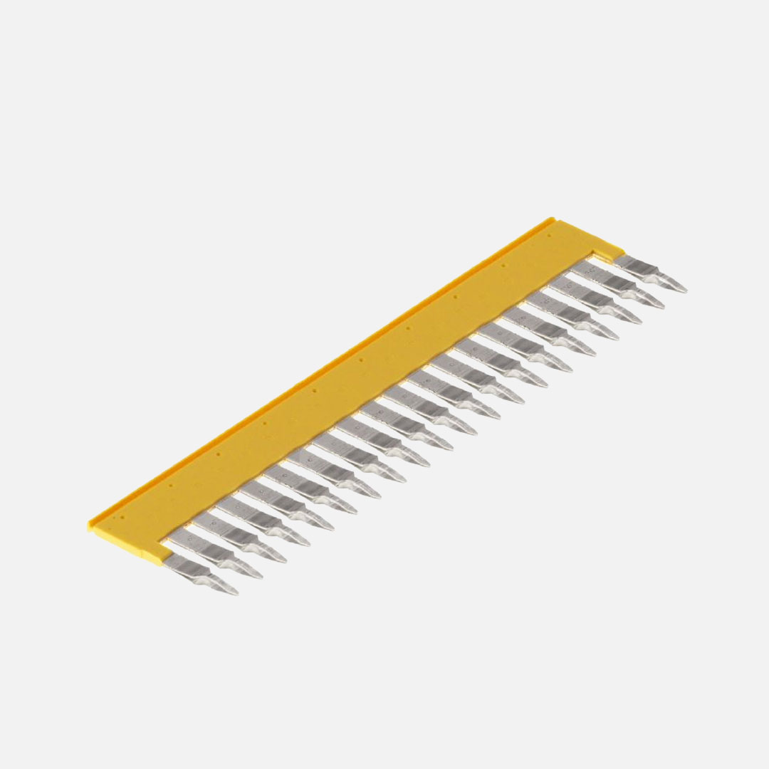 ZQV 4/20 Serie Z. Puente de conexión transversal enchufable amarillo de 20 polos. Especificado para soportar una corriente nominal de 34A. Indicado para usarse con las clemas WDU/ZDU/ZDK… con sección nominal de 4in. Diseñado para soportar una temperatura de trabajo de -50 / +120.
